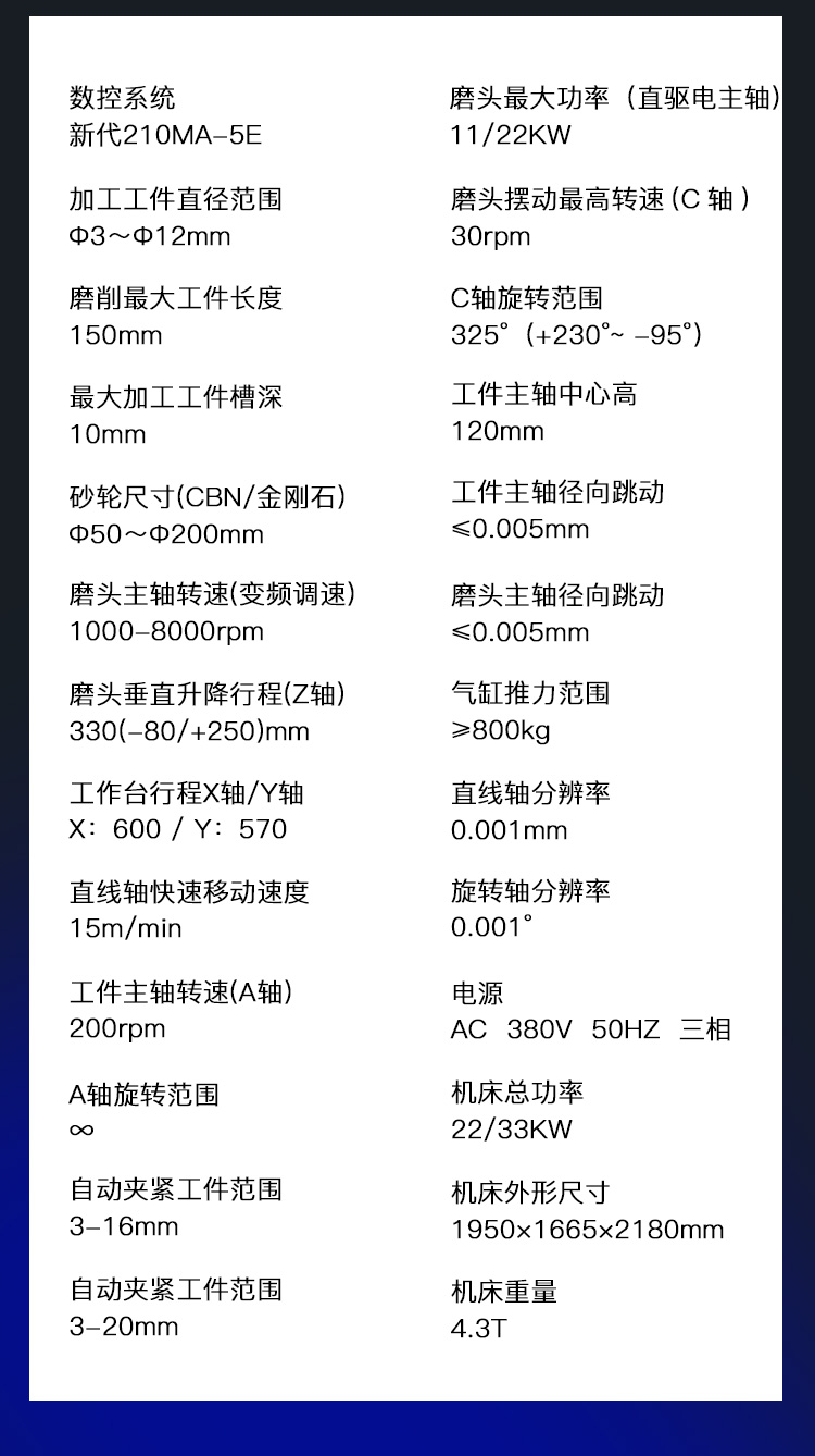 一、機(jī)床簡介1.應(yīng)用范圍:5軸5聯(lián)動(dòng)數(shù)控刀具磨床,適用于大直徑回轉(zhuǎn)類刀具的磨削和重磨,能在一次裝夾的情況下完成整個(gè)磨削和修磨過程,可加...