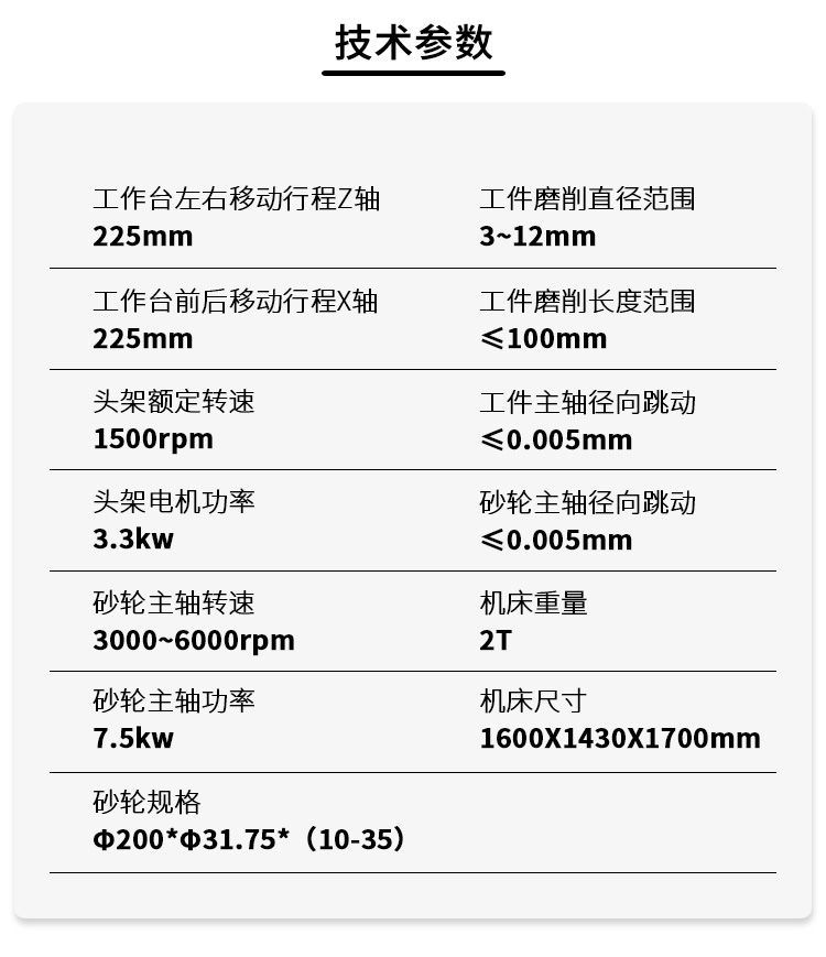 根據(jù)工件規(guī)格大小不同,6毫米以下每件磨削時(shí)間小于50秒、12毫米以下每件磨削時(shí)間小于1分鐘。